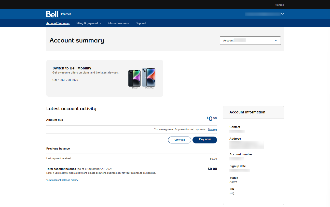 Access your Bell Internet account 24 hours a day, 7 days a week.