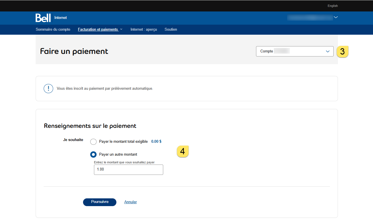 - Vous pouvez payer le montant total dû ou choisir de payer un autre montant pour effectuer un paiement